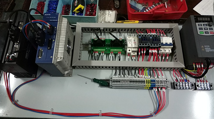 調(diào)直切斷機(jī)系統(tǒng)用到了電子凸輪運(yùn)動(dòng)功能,主流系統(tǒng)控制方案為觸摸屏、運(yùn)動(dòng)控制器、送料伺服、飛剪伺服。   科威智能伺服集伺服驅(qū)動(dòng)、PLC控制、運(yùn)動(dòng)控制于一體,正好適用于調(diào)直切斷機(jī)系統(tǒng)。科威智能伺服調(diào)直切斷機(jī)系統(tǒng)方案為觸摸屏、飛剪智能伺服、送料智能伺服。